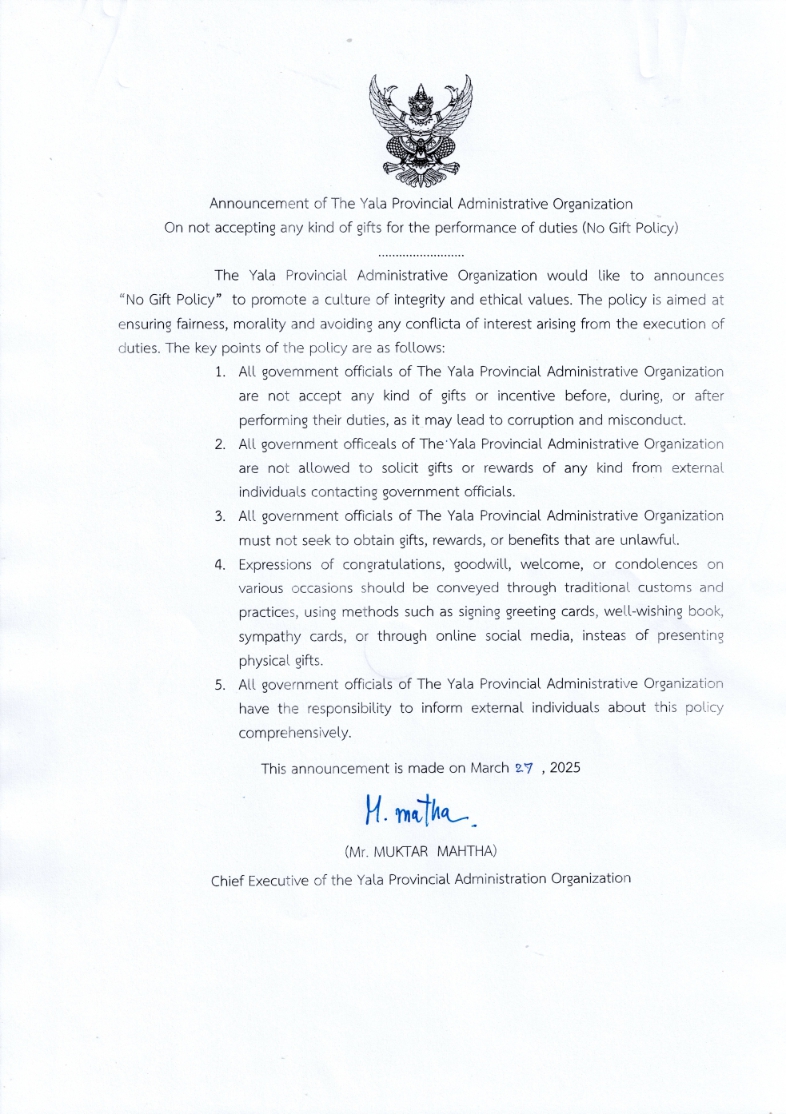 ประกาศ อบจ.ยะลา เรื่อง…