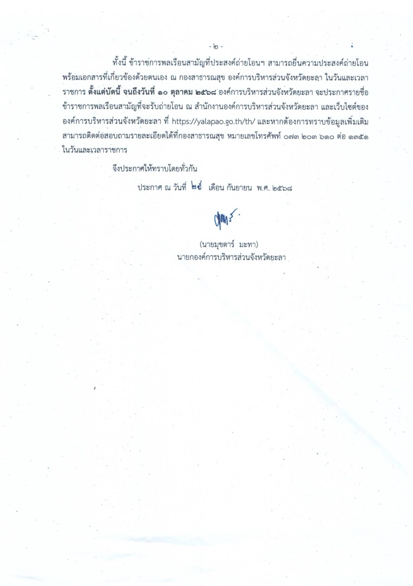 ประกาศ อบจ.ยะลา เรื่อง รายชื่อผู้มีสิทธิเข้ารับการคัดเลือกภาคความเหมาะสมกับตำแหน่ง…