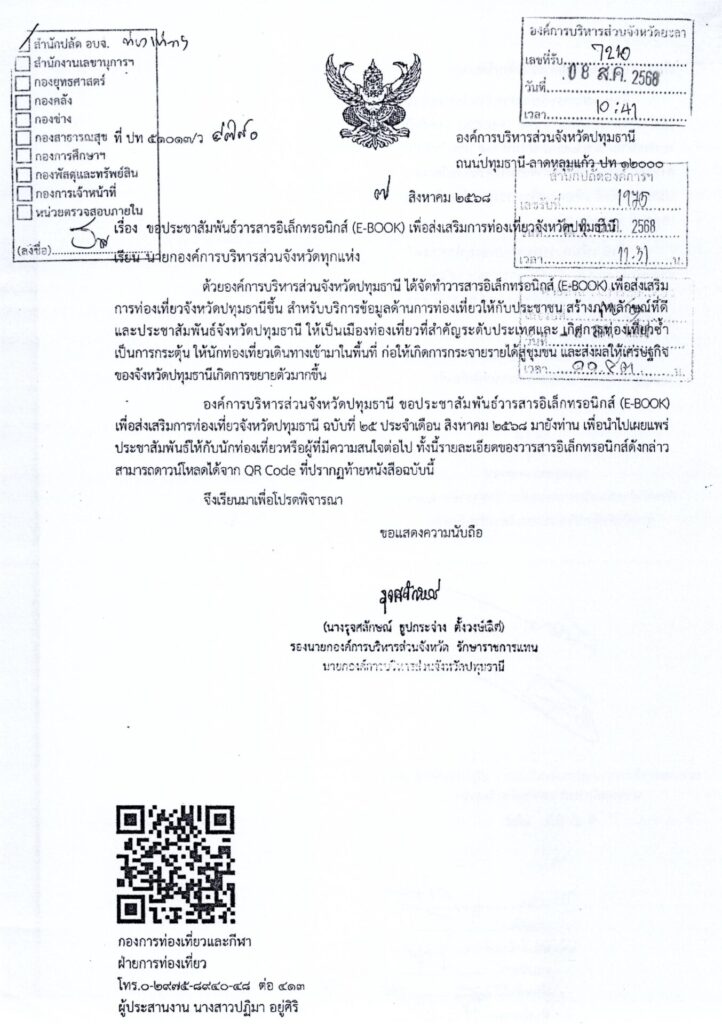 ข่าวประชาสัมพันธ์ ประชาสัมพันธ์วารสารอิเล็กทรอนิกส์ E-BOOK เพื่อส่งเสริมการท่องเที่ยวจังหวัดปทุมธานี อัพเดทล่าสุด 18-ส.ค.-2025 138 แชร์