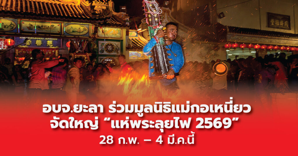 อบจ.ยะลา ร่วมมูลนิธิแม่กอเหนี่ยว จัดใหญ่ “แห่พระลุยไฟ 2569” 28 ก.พ. – 4 มี.ค.นี้