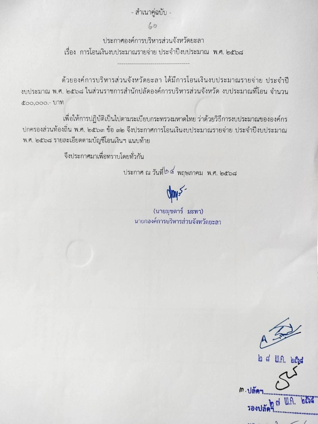 มีครับ โดยทางองค์การบริหารส่วนจังหวัดยะลาจะประชาสัมพันธ...